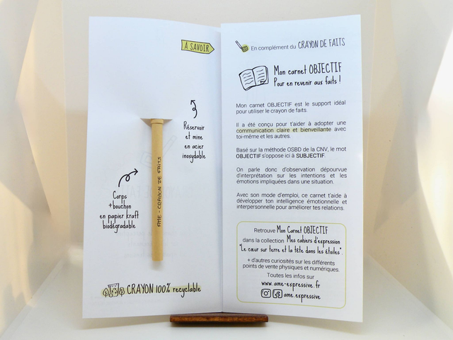 Inspiré de la CNV (Communication non violente), ce crayon vous aide symboliquement à observer de la façon la plus neutre possible une situation en faisant abstraction des émotions qu'elle déclenche.